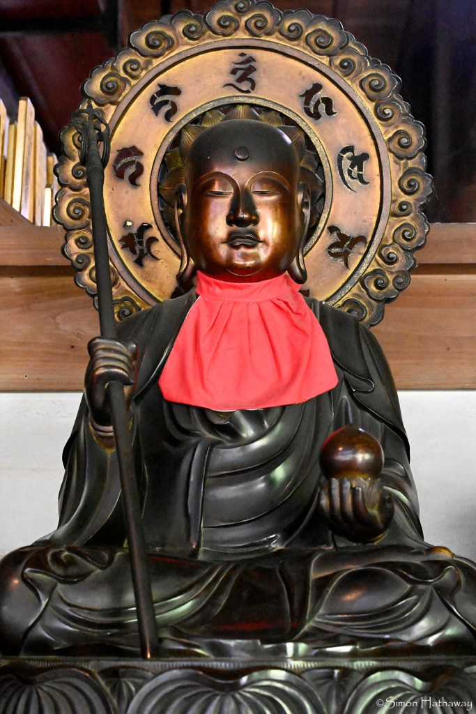 One day, his old master asked Shinchan to scrub his body while bathing. As Shinchan rubbed his back, he remarked, “The Buddhist shrine is truly wonderful, but the Buddha is not efficacious.” When the master turned his head to look intently, Shinchan added, “The Buddha may not be efficacious, but he is emitting light.”